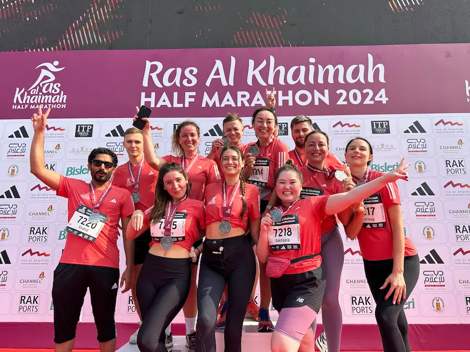 Вся команда активно участвует в марафонах и спортивных мероприятиях ОАЭ. Мы такие же энергичные, как наш подход к работе.